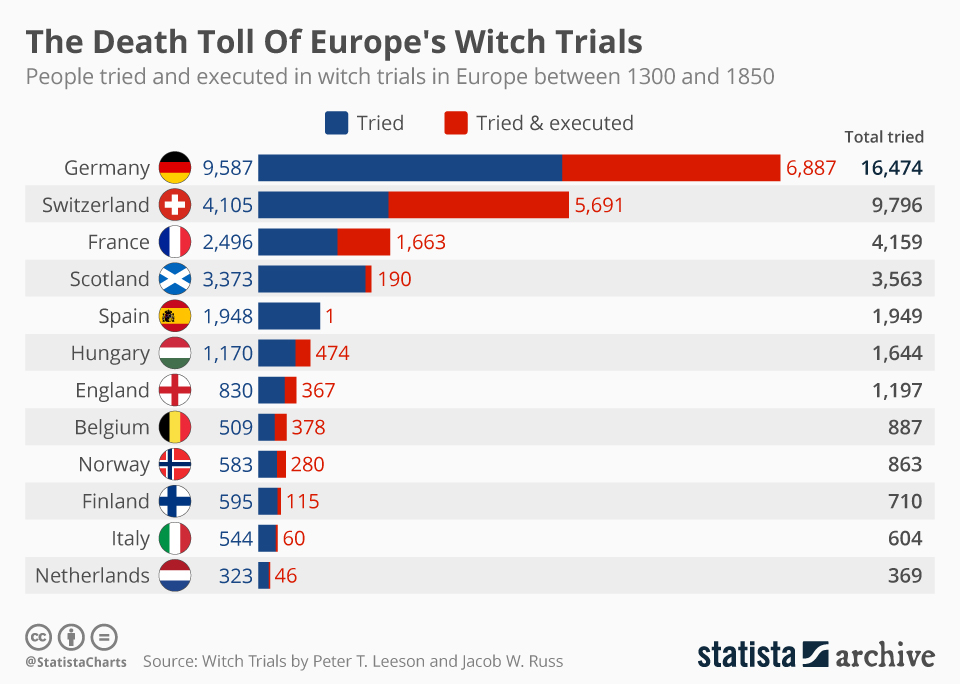 Between the 15th and 18th centuries, across Europe and early America, as many as 60,000 people were executed for witchcraft, the vast majority of them women.